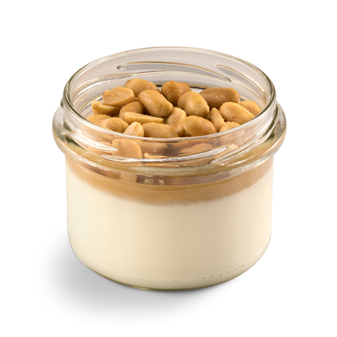 Aksamitny deser na bazie śmietanki kremówki. Słodycz kajmaku przełamują słone orzeszki ziemne.